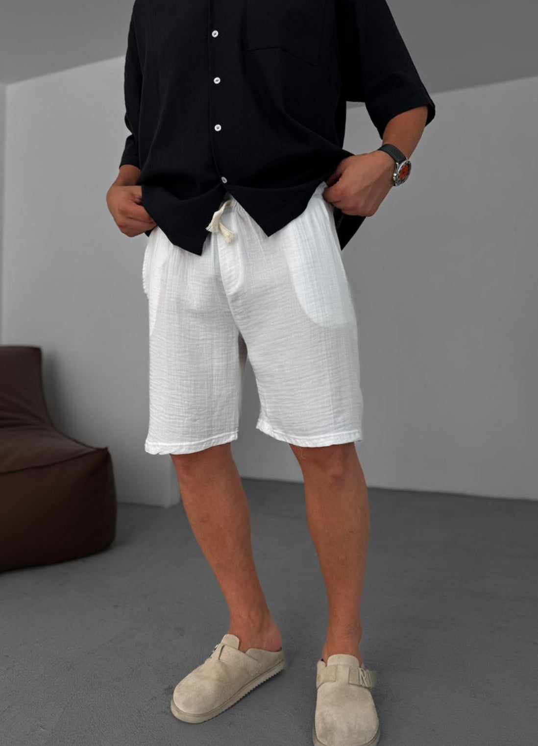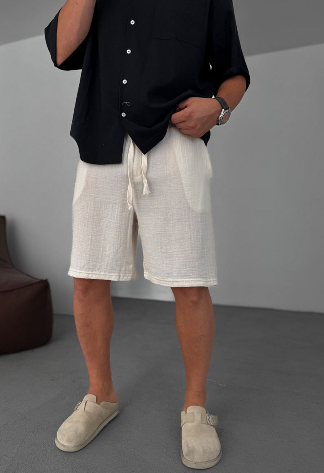 Muslin Fabric Linen Short - 002 - white