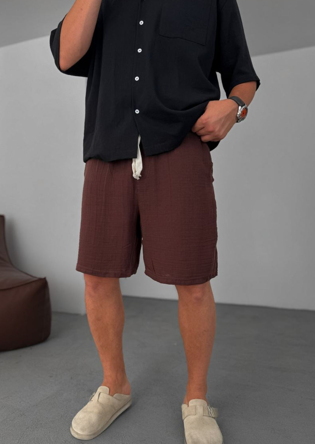 Muslin Fabric Linen Short - 002 - brown