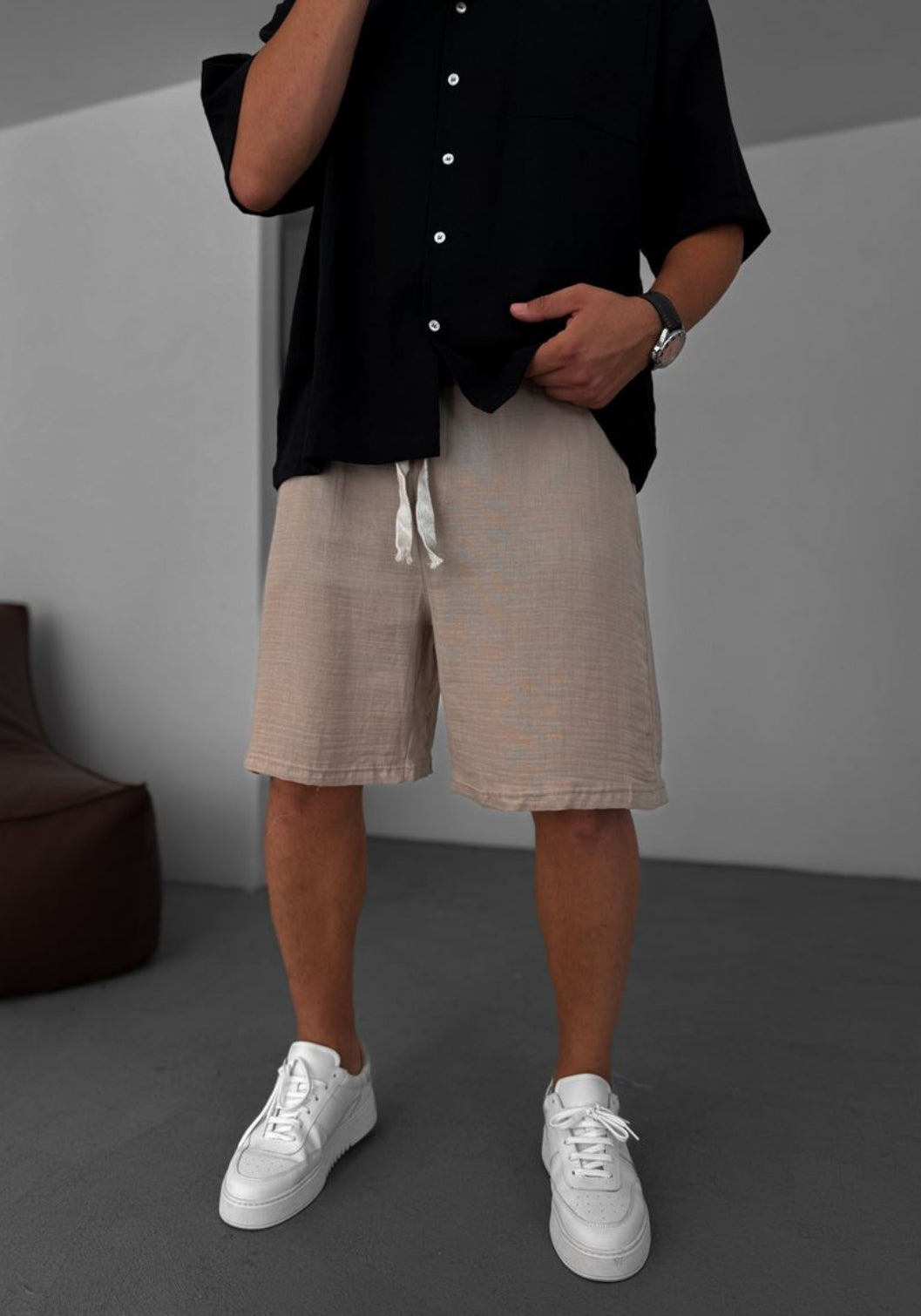 Muslin Fabric Linen Short - 002 - beige
