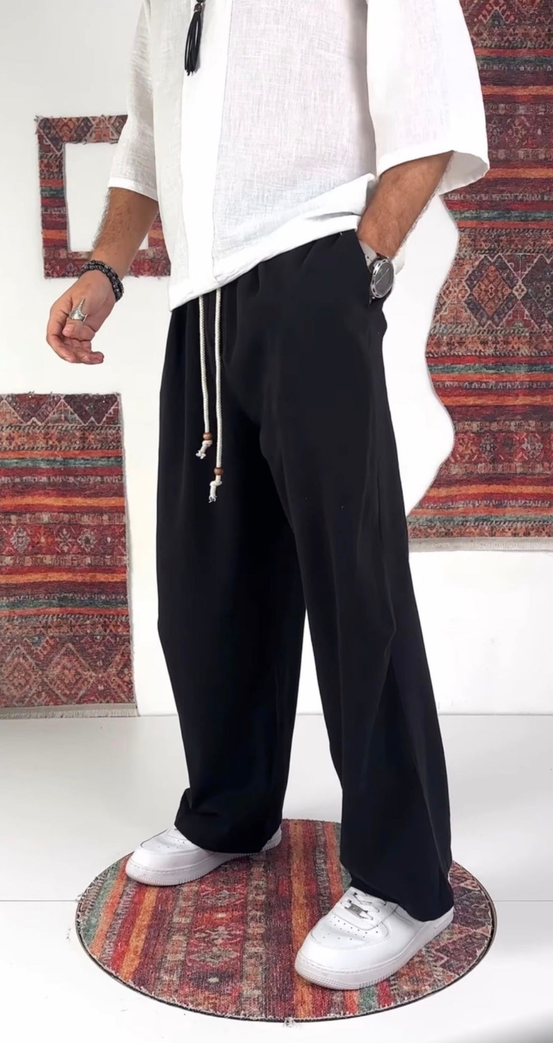 Relaxed Linen Jogger Pants – black 0120