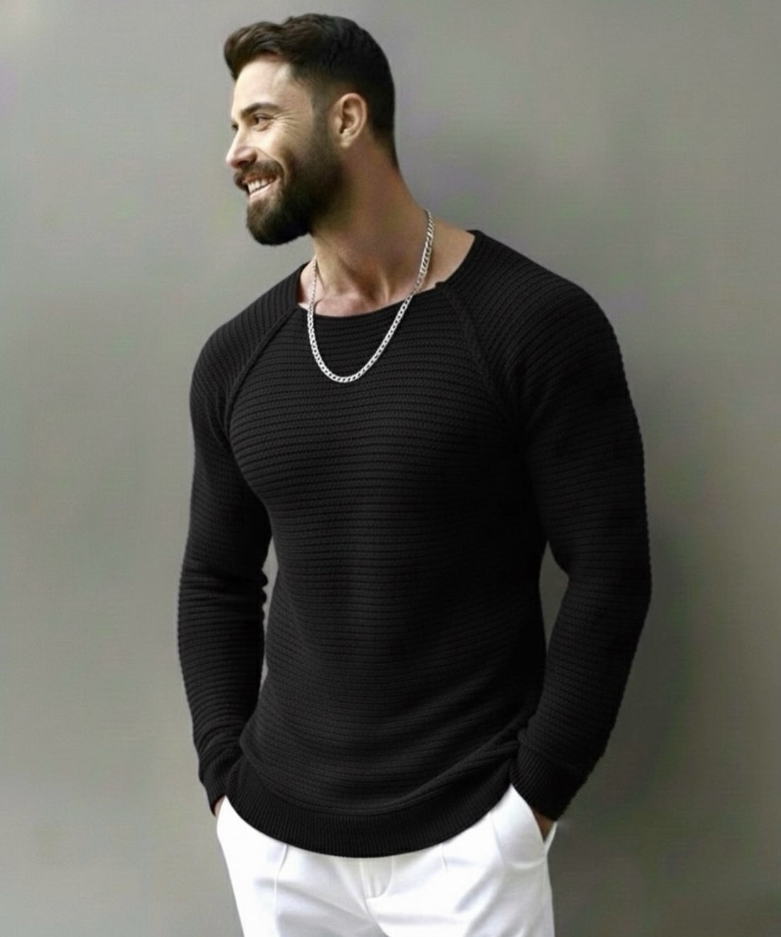 Knitwear slim-fit sweatshirt / black- 0107