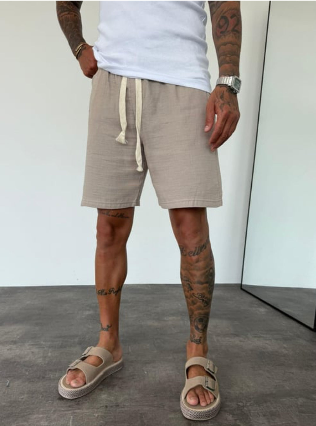 Muslin Fabric Linen Short - 002 - light brown