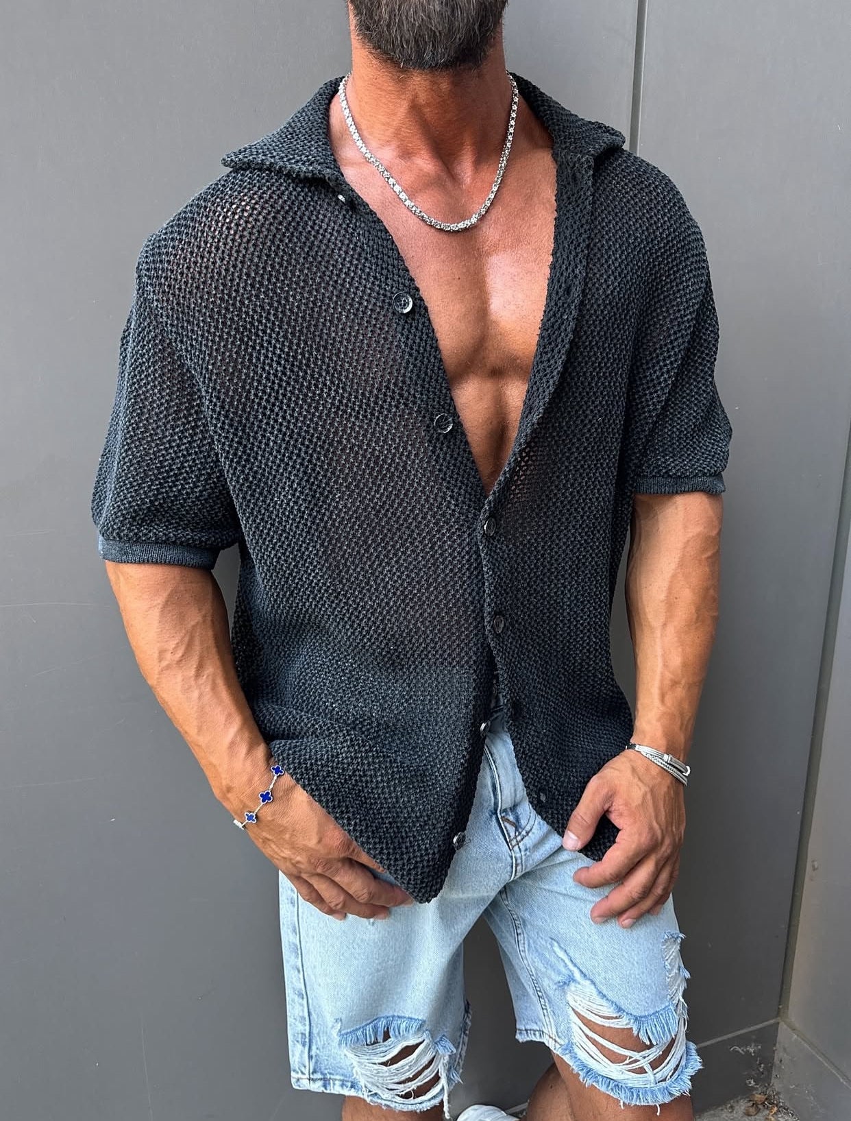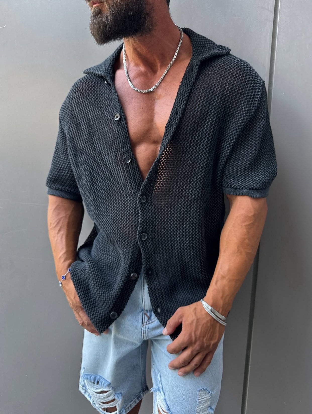 Knitwear oversized shirt - black 0036