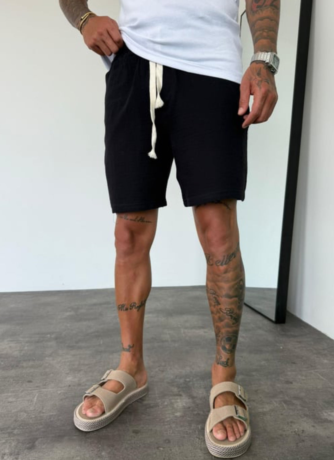 Muslin Fabric Linen Short - 002 - Balck