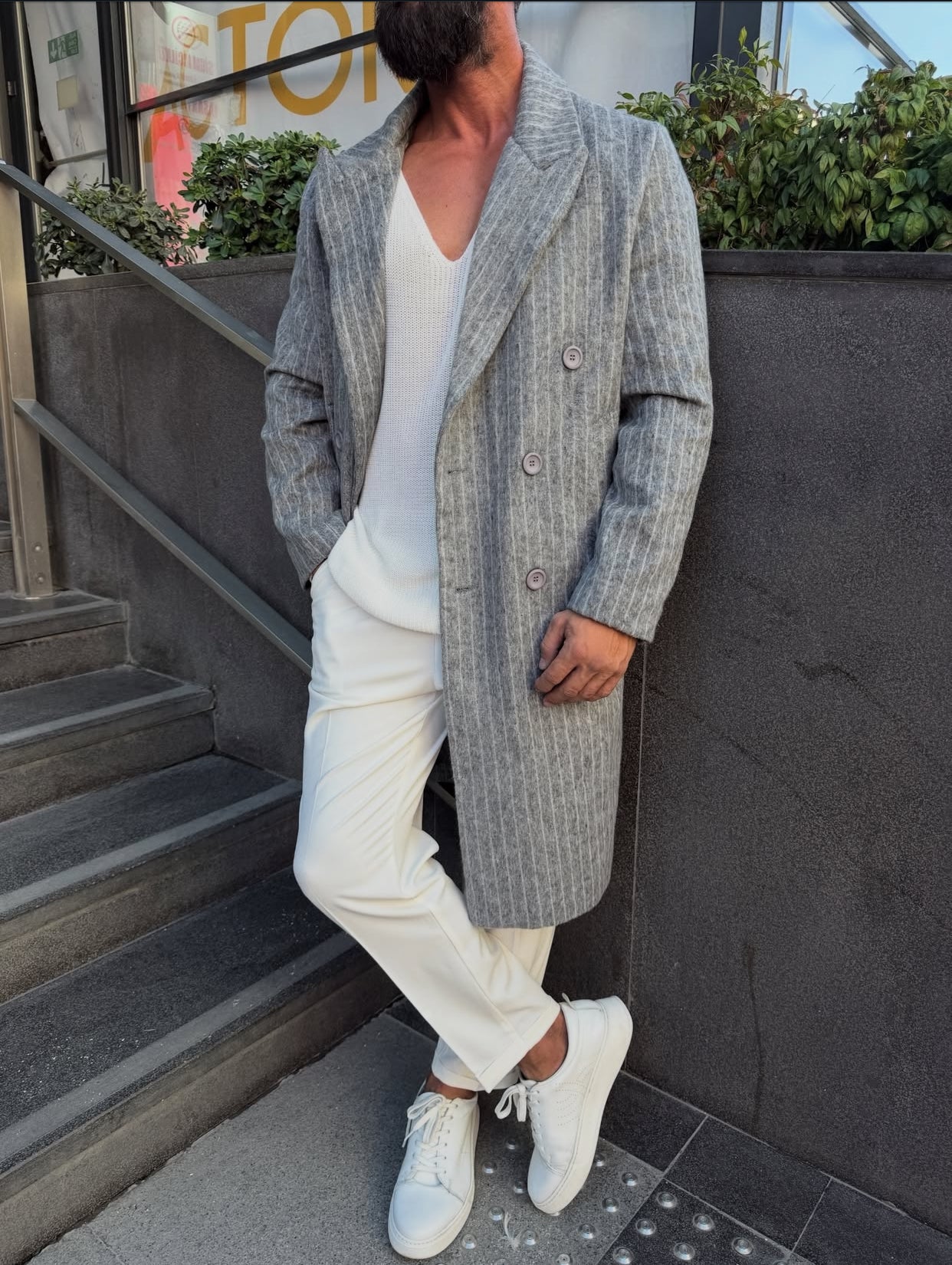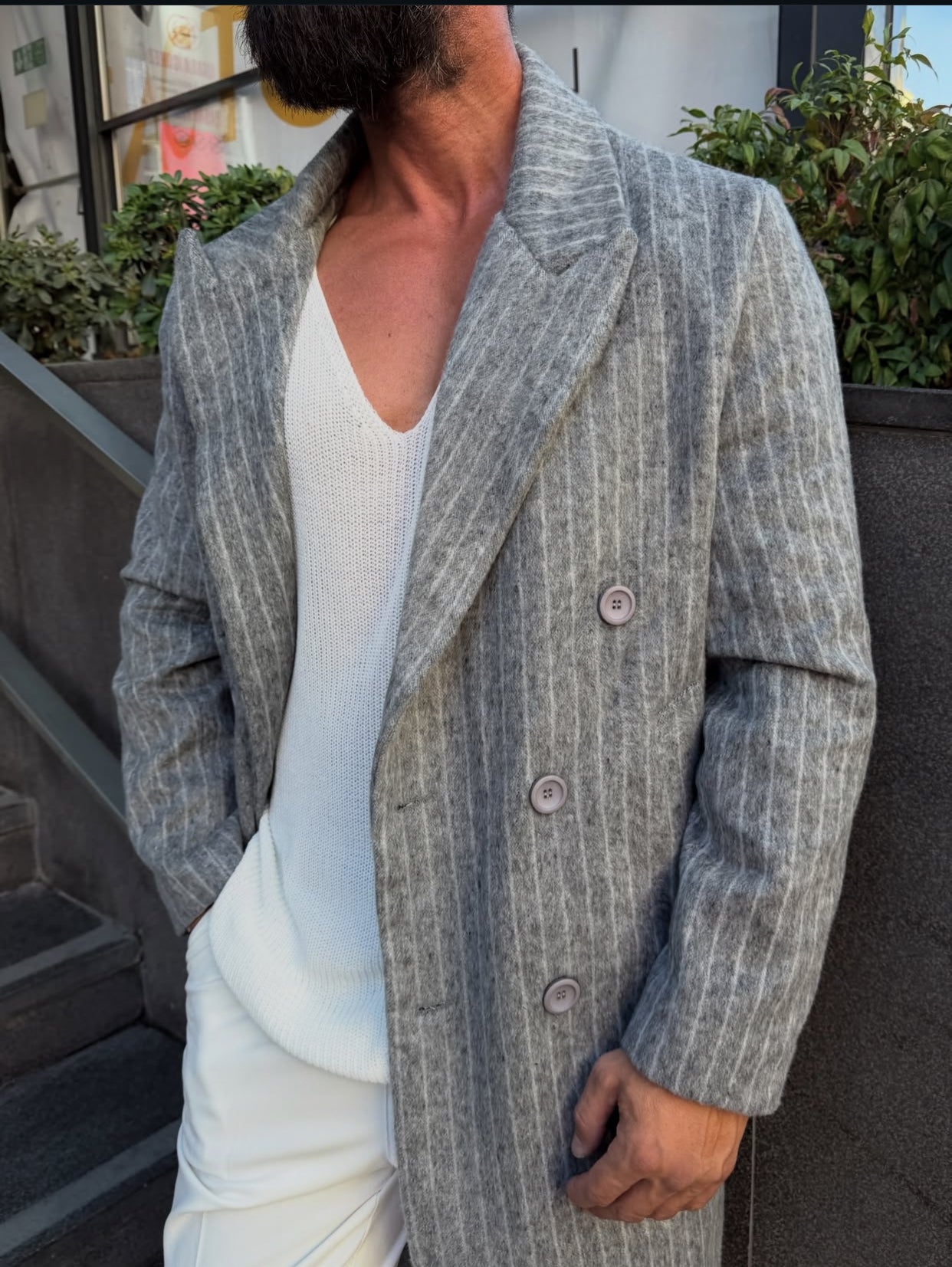 Textured water-repellent coat - light gray 0076
